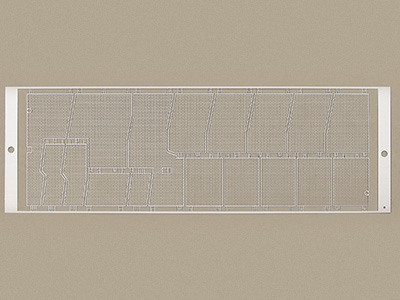 柵網(wǎng)即柵極是VFD(真空熒光顯示屏)的重要部件,其作用是在不妨礙顯示的原則下,將不銹鋼等的薄板予以光刻蝕(PHOTO-ETHING)后成型的金屬網(wǎng)格(MESH),在其上加上正電壓,可加速并擴(kuò)散自燈絲所放射出來的電子,將之導(dǎo)向陽極;相反地,如果加上負(fù)電壓,則能攔阻游向陽極的電子,使陽極消光??蓮V泛應(yīng)用于汽車VFD面板、家電VFD面板、 音響、VTR VFD面板、事務(wù)機(jī)用VFD面板等領(lǐng)域。