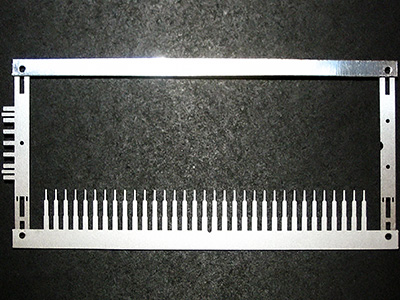 陣列、支架、連桿可組成一個整體,是VFD(真空熒光顯示屏)的重要部件,其作用是安裝柵網(wǎng)和燈絲的位置,其中的引腳則為安裝VFD的線路板??蓮V泛應(yīng)用于汽車VFD面板、家電VFD面板、 音響、VTR VFD面板、事務(wù)機用VFD面板、計量儀器用VFD面板、 通信設(shè)備用VFD面板等領(lǐng)域。